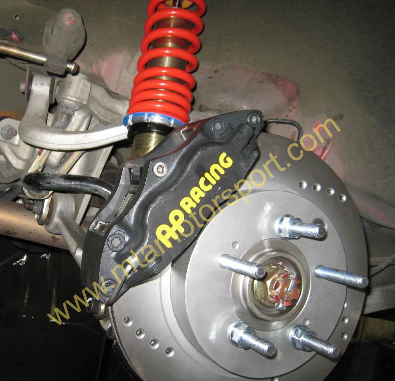 ** Instalación de un conjunto de discos, estribos y pastillas de otro modelo de la misma marca cuyo tamaño sea superior y con mejores características de frenada.